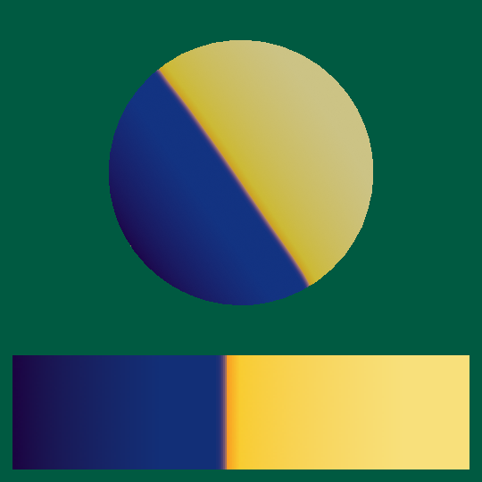 Let’s put some colour into it! I’ll use a light yellow for the lit part, and darker blue for the shaded part. It’s as simple as putting those colours in the ramp.